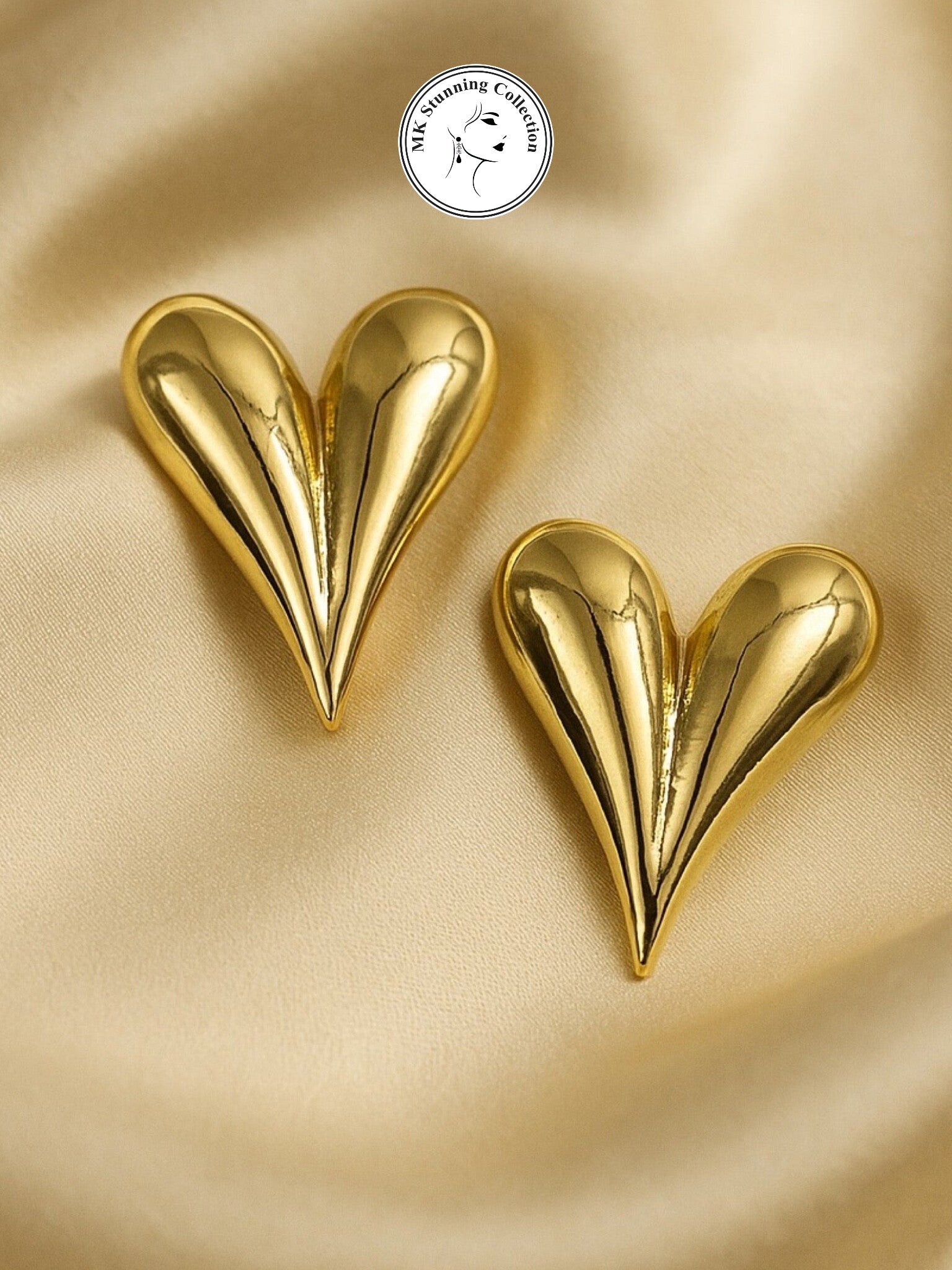 Add a touch of glamour to your look with these stunning gold-tone heart-shaped earrings from the MK Stunning Collection. Featuring a bold, reflective finish and a unique elongated heart design, these earrings are perfect for both special occasions and everyday elegance. Lightweight yet eye-catching, they make a perfect gift or a stylish addition to your jewelry collection.