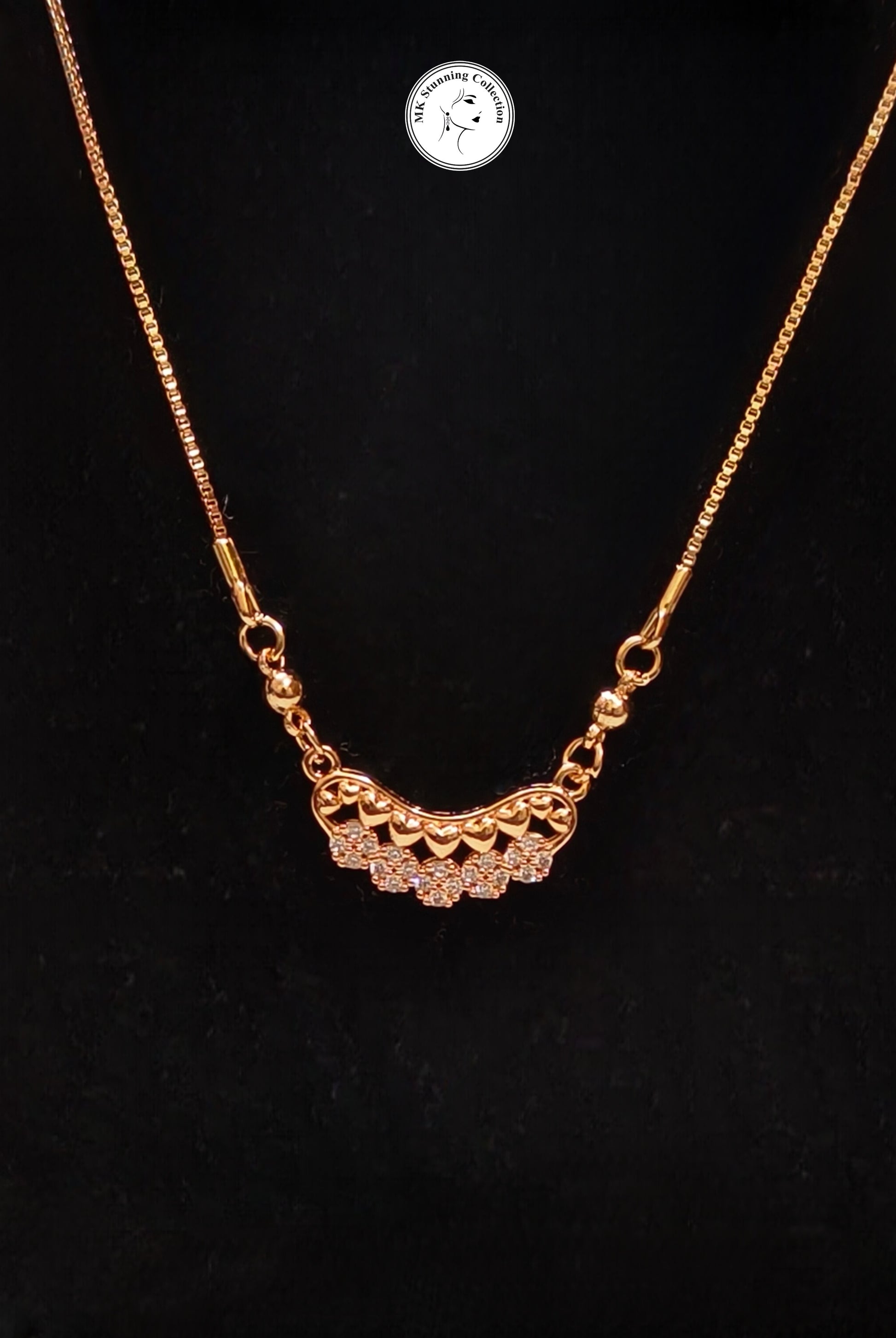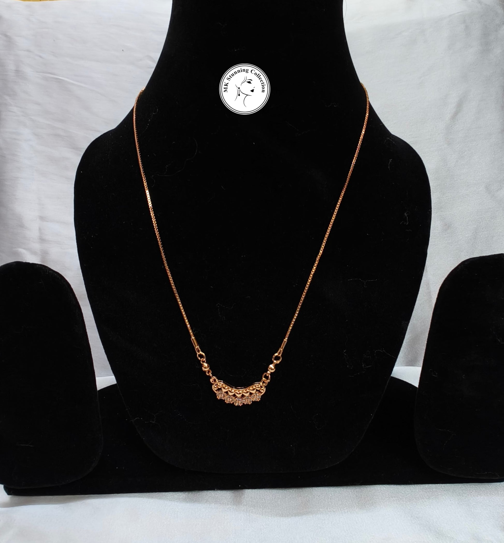 This stunning gold necklace features a delicate chain adorned with a beautifully crafted pendant. The pendant showcases intricate designs with small dangling accents that add a touch of elegance. Perfect for both casual and formal occasions, this piece is a must-have for your jewelry collection. Ideal for gifting or treating yourself!