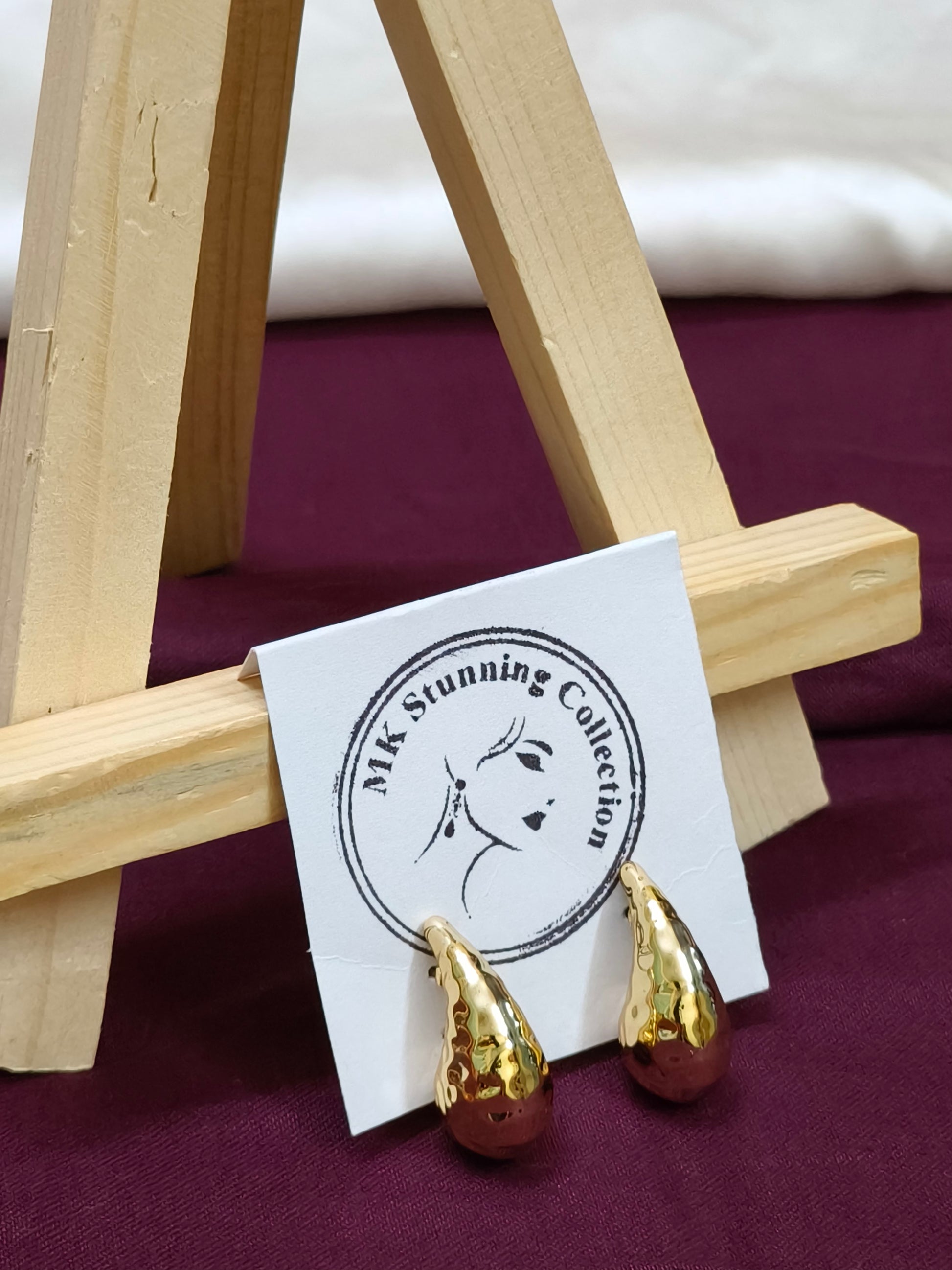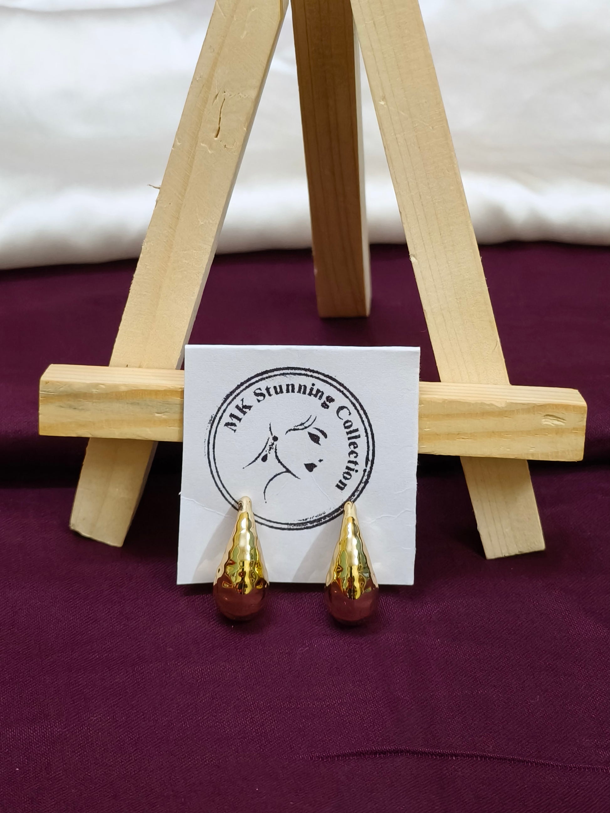 Add a touch of luxury to your look with these stunning gold-tone teardrop earrings from the MK Stunning Collection. Featuring a polished, reflective surface and a classic teardrop design, these earrings are perfect for both everyday elegance and special occasions. Crafted for comfort and style, they effortlessly elevate any outfit. Displayed on a deep maroon fabric backdrop, these earrings embody timeless sophistication.