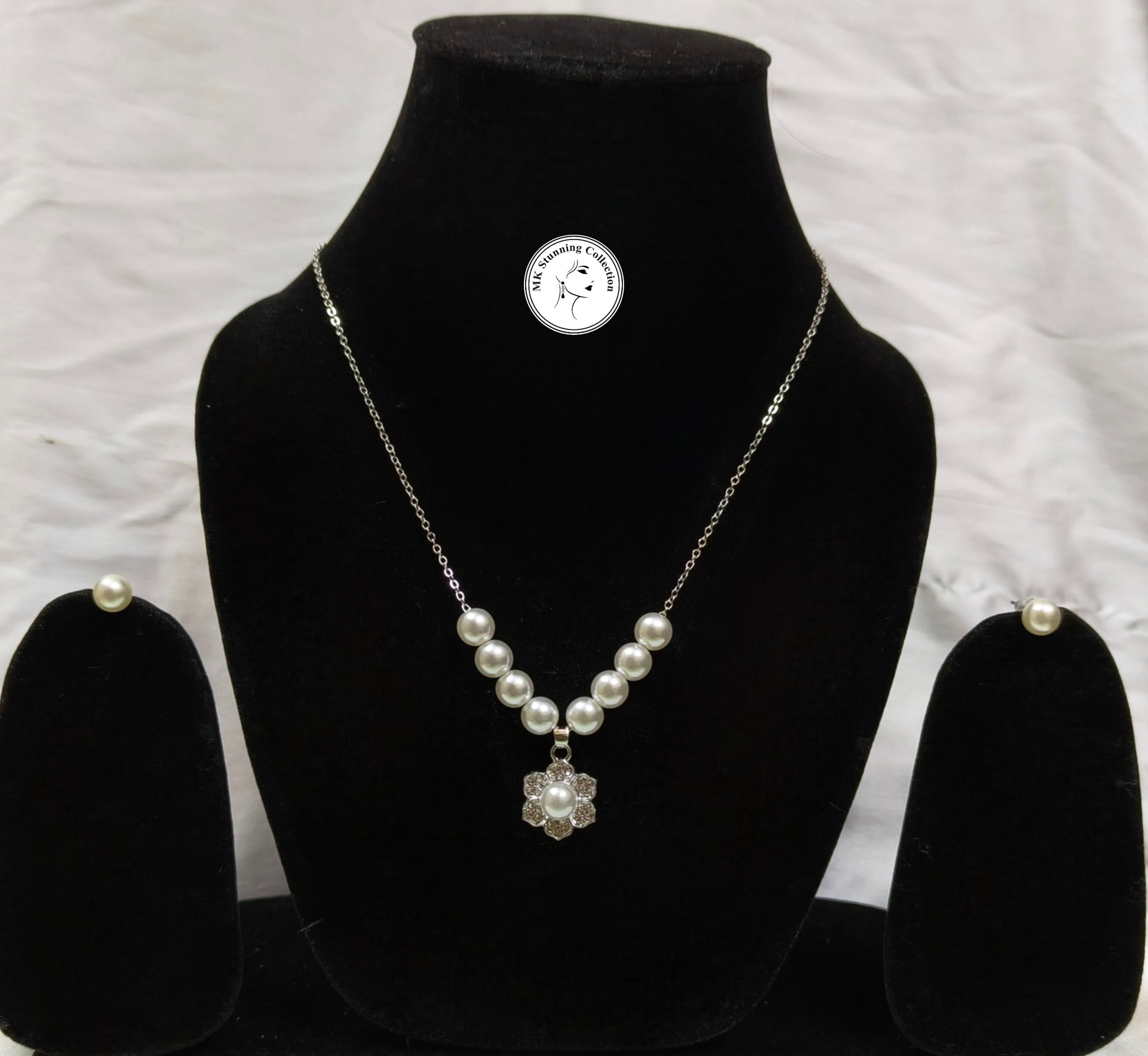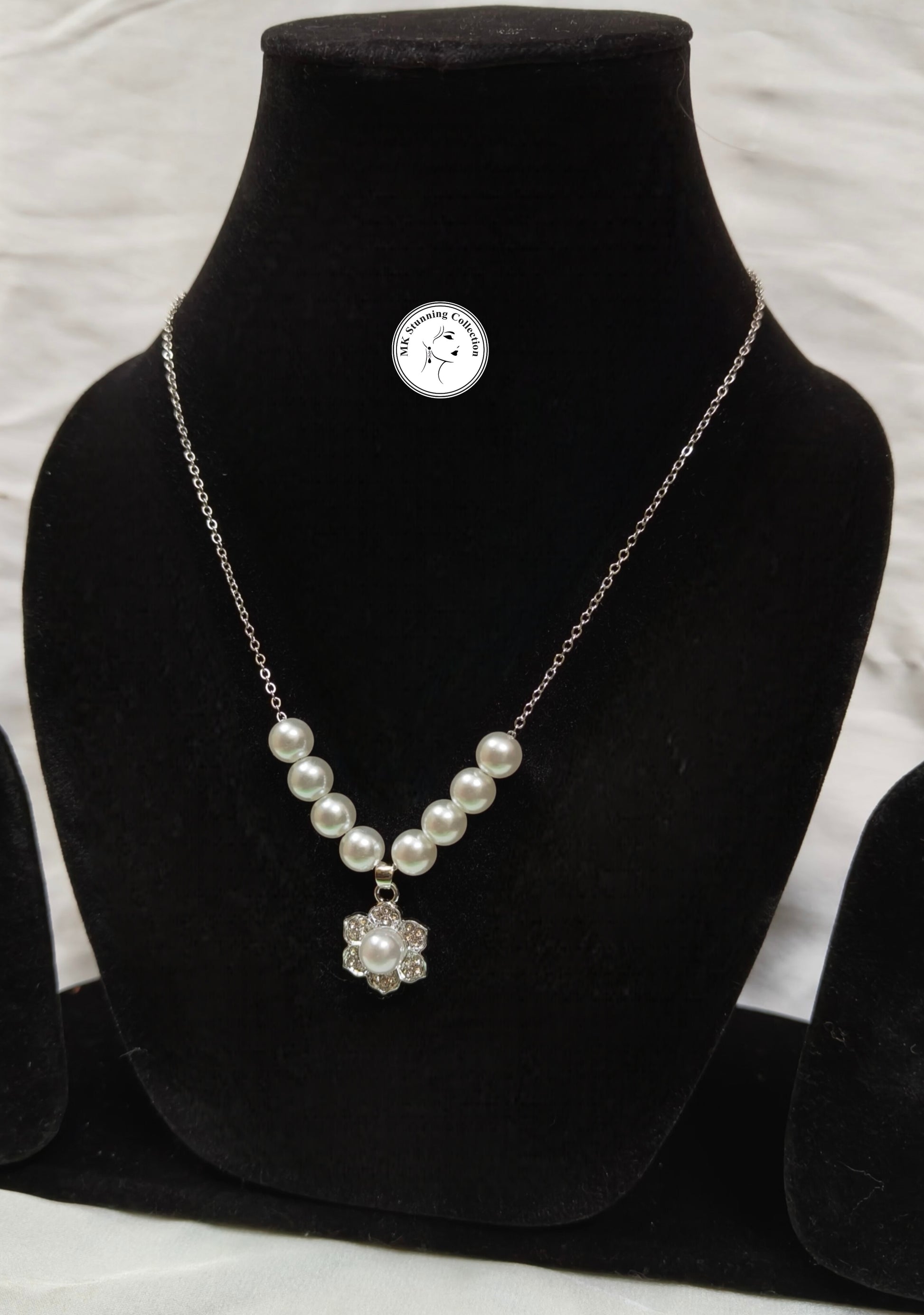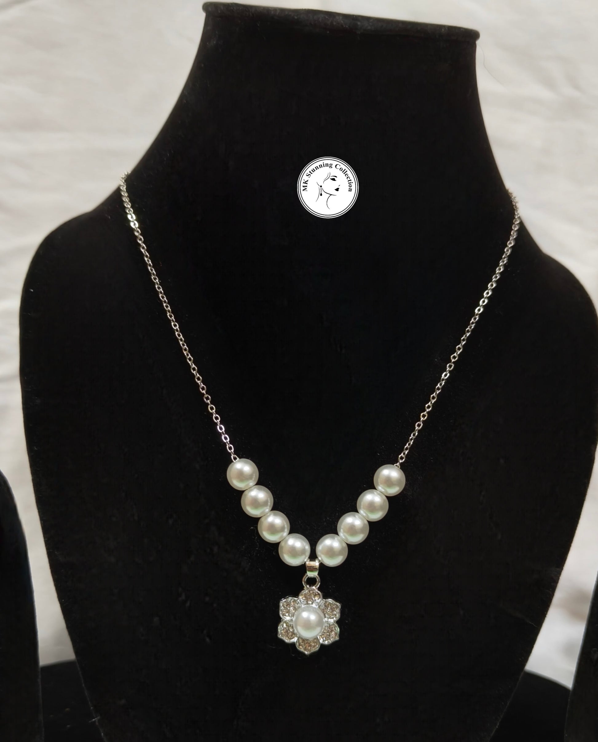 Elegant Pearl Necklace with Crystal Pendant Set